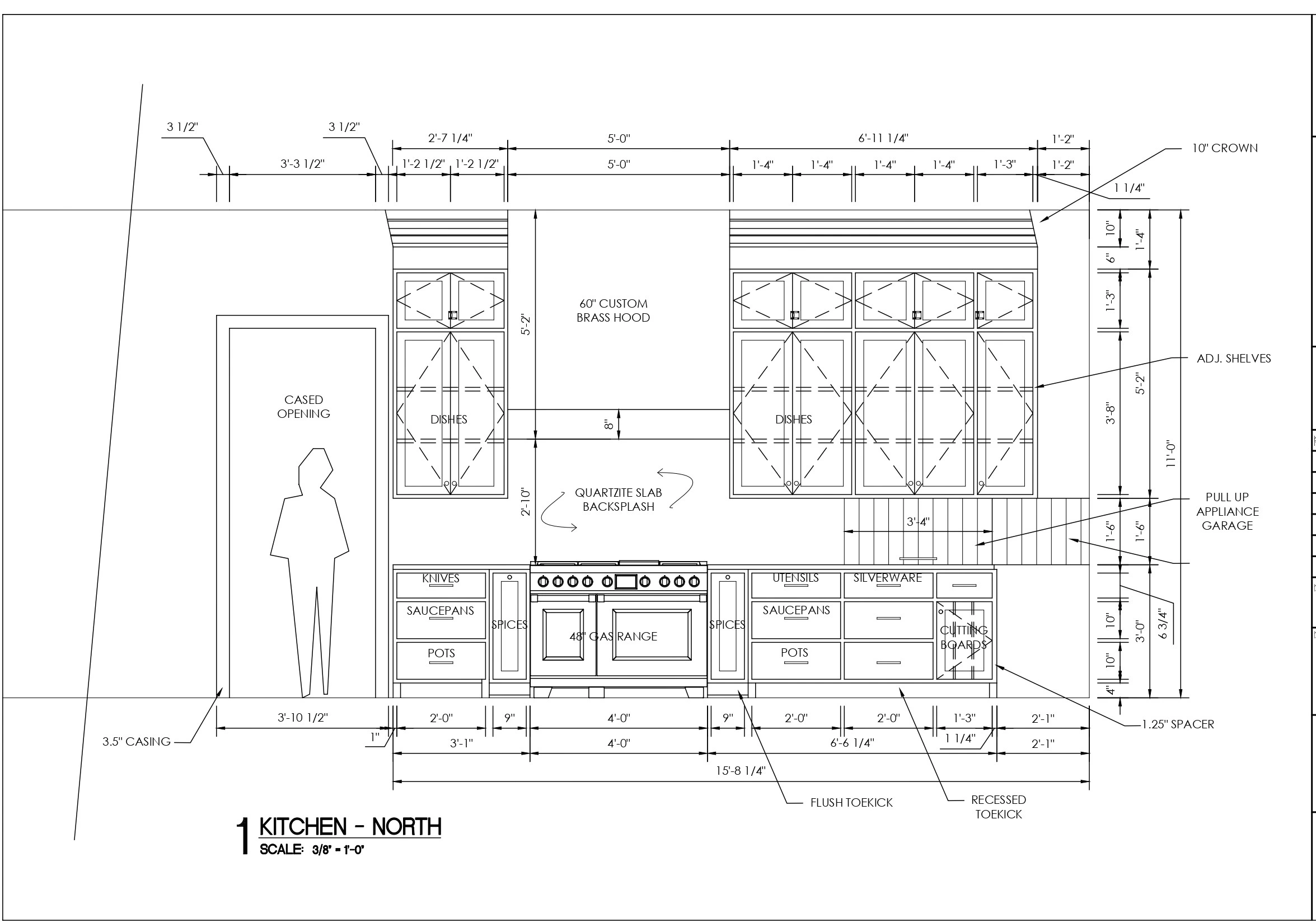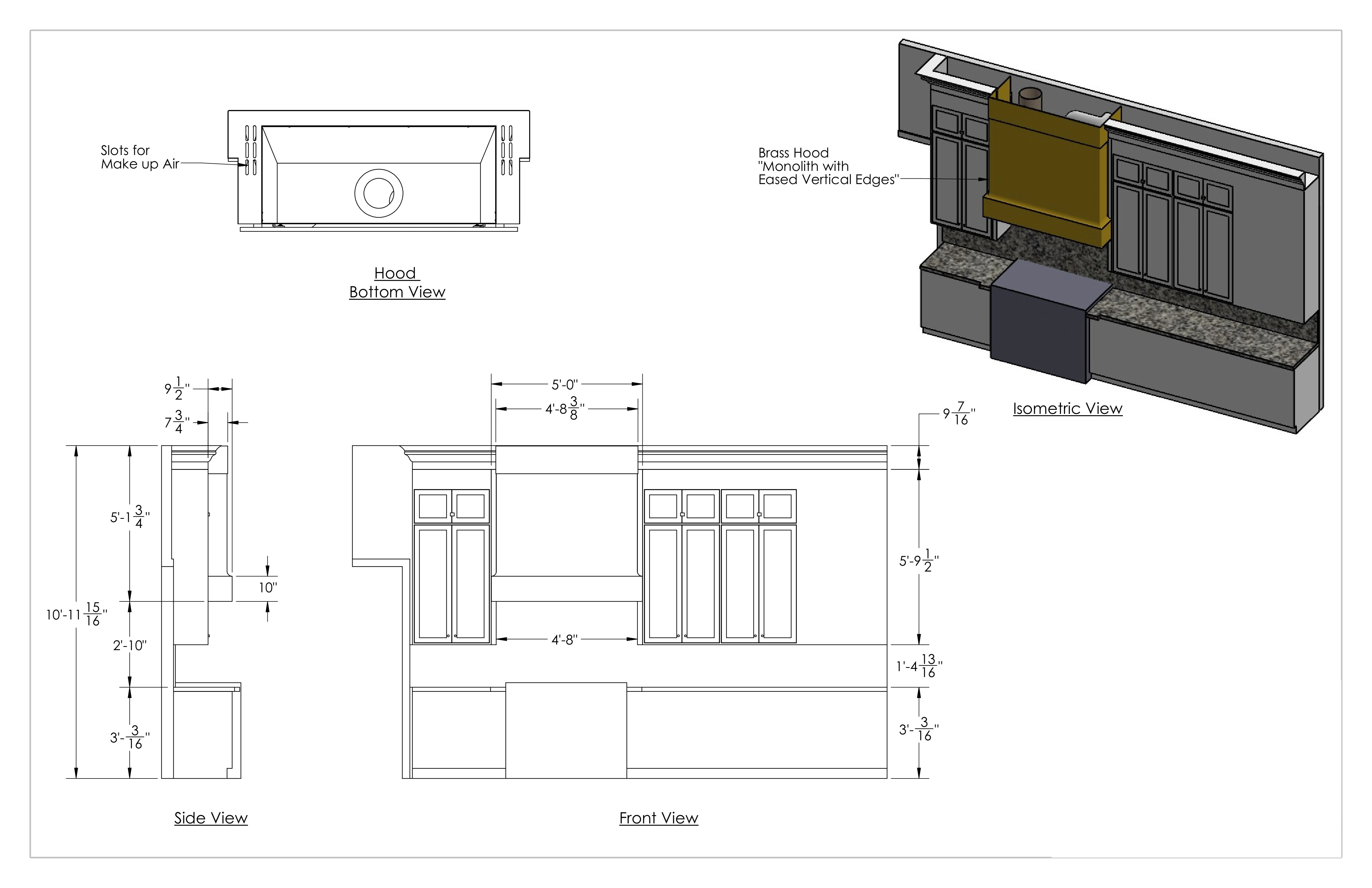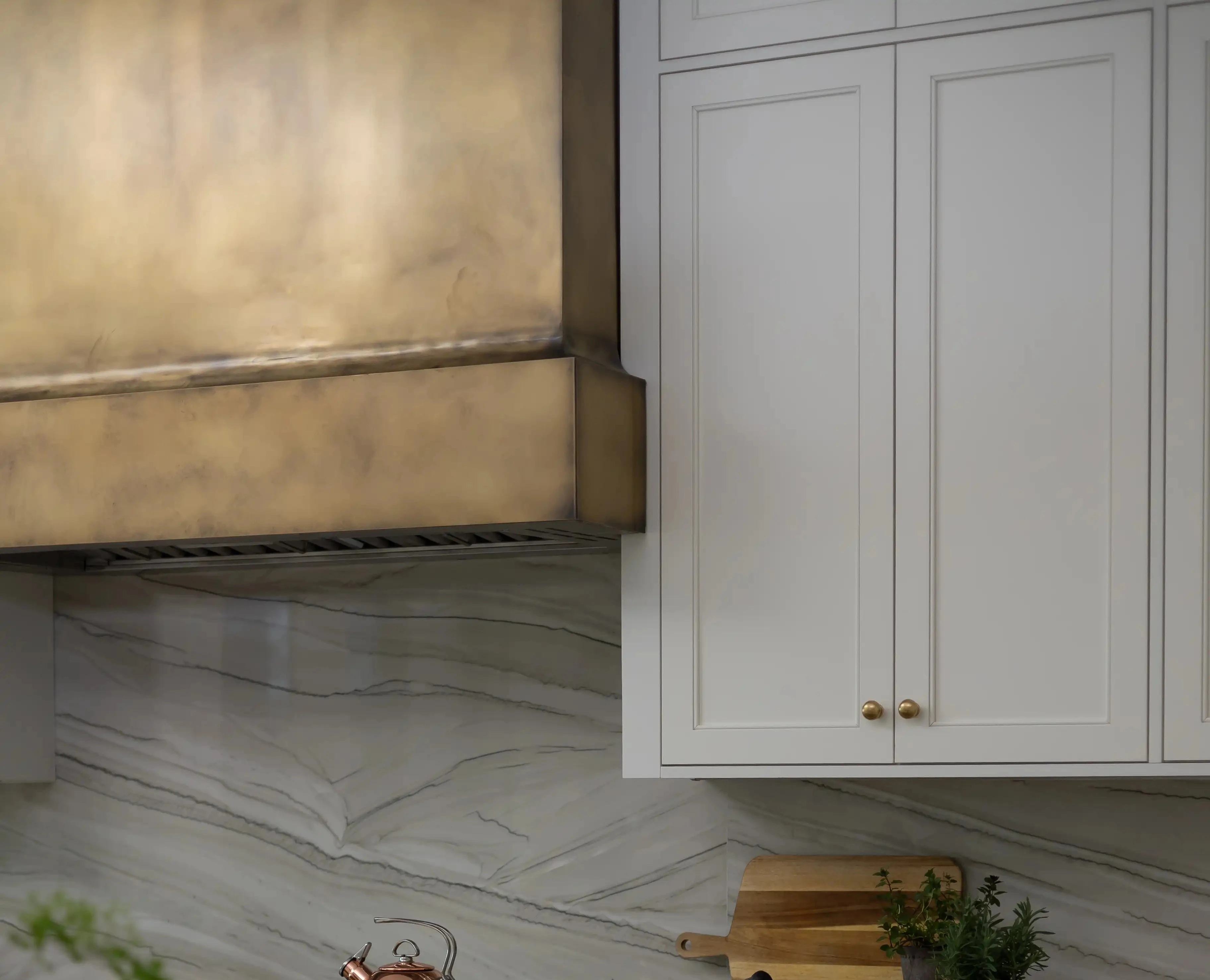 We crafted a brass vent hood cover as the centerpiece of the kitchen. To ensure it aligned with the client’s vision and fit seamlessly into its place with exacting detail, we maintained thorough communication supported by images and regular site reports.
