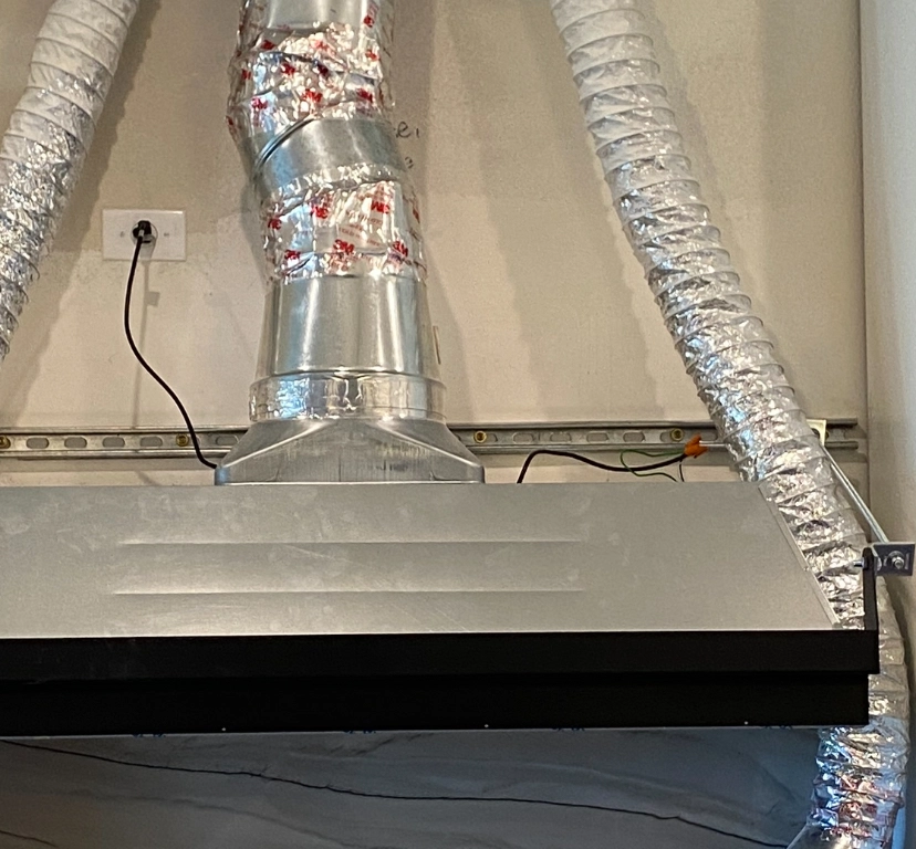 The make-up air system was integrated into the hood to allow direct air replacement from the higher CFM air draw that this appliance can deliver. A baffling system was added to ensure it only opens when needed, preventing Texas heat or interior AC drift from escaping passively.